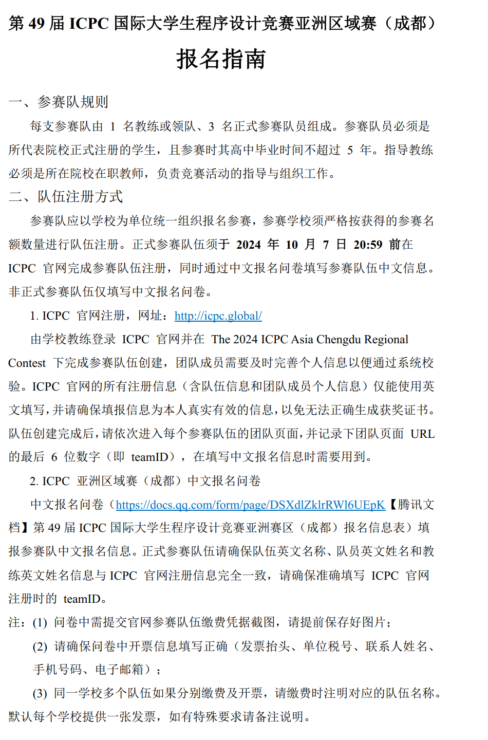 第 49 届 ICPC 亚洲区域赛成都邀请函&报名指南.pdf